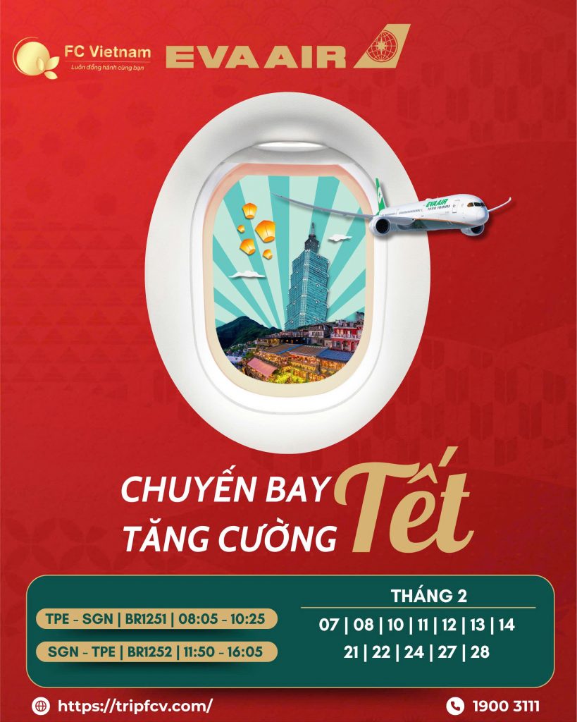 Đặt vé sớm – giữ chỗ đẹp – bay an lành cùng F.C Vietnam! Eva Air Tăng Cường Chuyến Bay Tết 2026 | SGN ⇄ TPE Tết đến gần rồi – bạn đã sẵn sàng cho hành trình du xuân – đoàn viên – sum họp chưa? Nhằm đáp ứng nhu cầu đi lại [...]