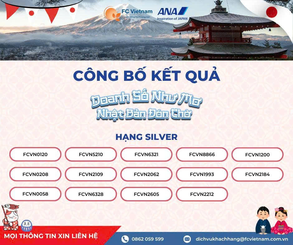 F.C Việt Nam xin chúc mừng Top 25 đại lý xuất sắc nhất đã chính thức ghi tên mình vào danh sách tham dự FAMTRIP TRI ÂN ĐẶC BIỆT TẠI NHẬT BẢN, dự kiến diễn ra vào tháng 12/2025.