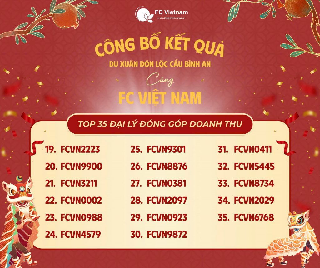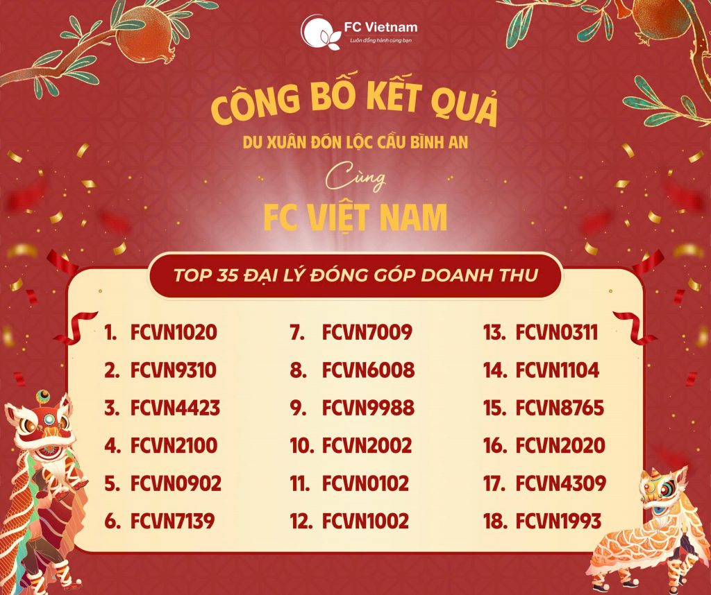 Một lần nữa, xin chúc mừng và cảm ơn Quý đối tác đã luôn tin tưởng, đồng hành cùng F.C Việt Nam. Hẹn gặp lại tất cả Quý vị trong chuyến hành trình rước lộc đầu xuân!