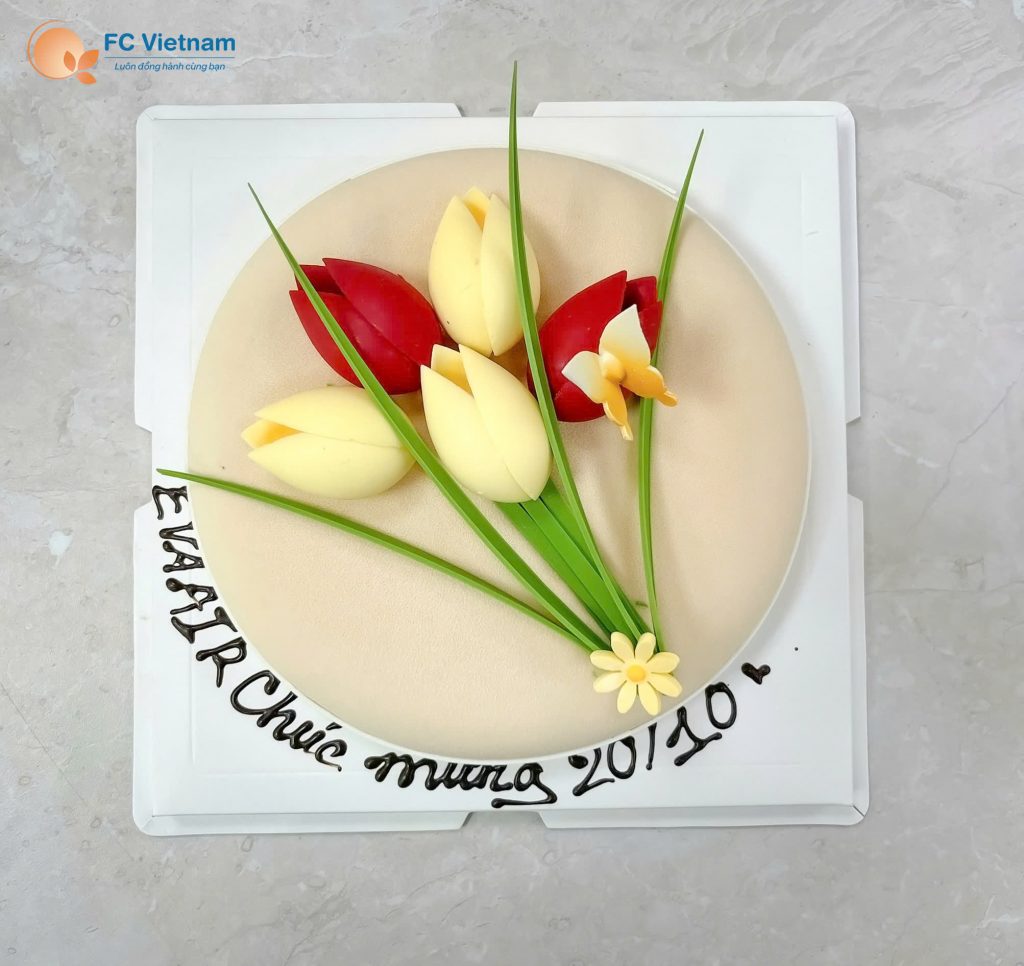 Nhân dịp Ngày Phụ nữ Việt Nam 20/10, F.C Việt Nam vui mừng nhận được món quà đặc biệt từ Eva Airways – chiếc bánh kem xinh xắn cùng lời chúc thân thương gửi tới toàn thể chị em phụ nữ của công ty.