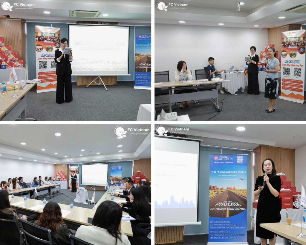 Trong chương trình, đại diện China Airlines đã chia sẻ chi tiết những sản phẩm, chính sách và thông tin về đường bay Phoenix mới được hãng khai thác. Bên cạnh đó là những cập nhật về quyền lợi khách hội viên, khách hàng doanh nghiệp, giúp Quý đối tác có thêm góc nhìn rõ ràng và cơ hội tối ưu hiệu quả kinh doanh.