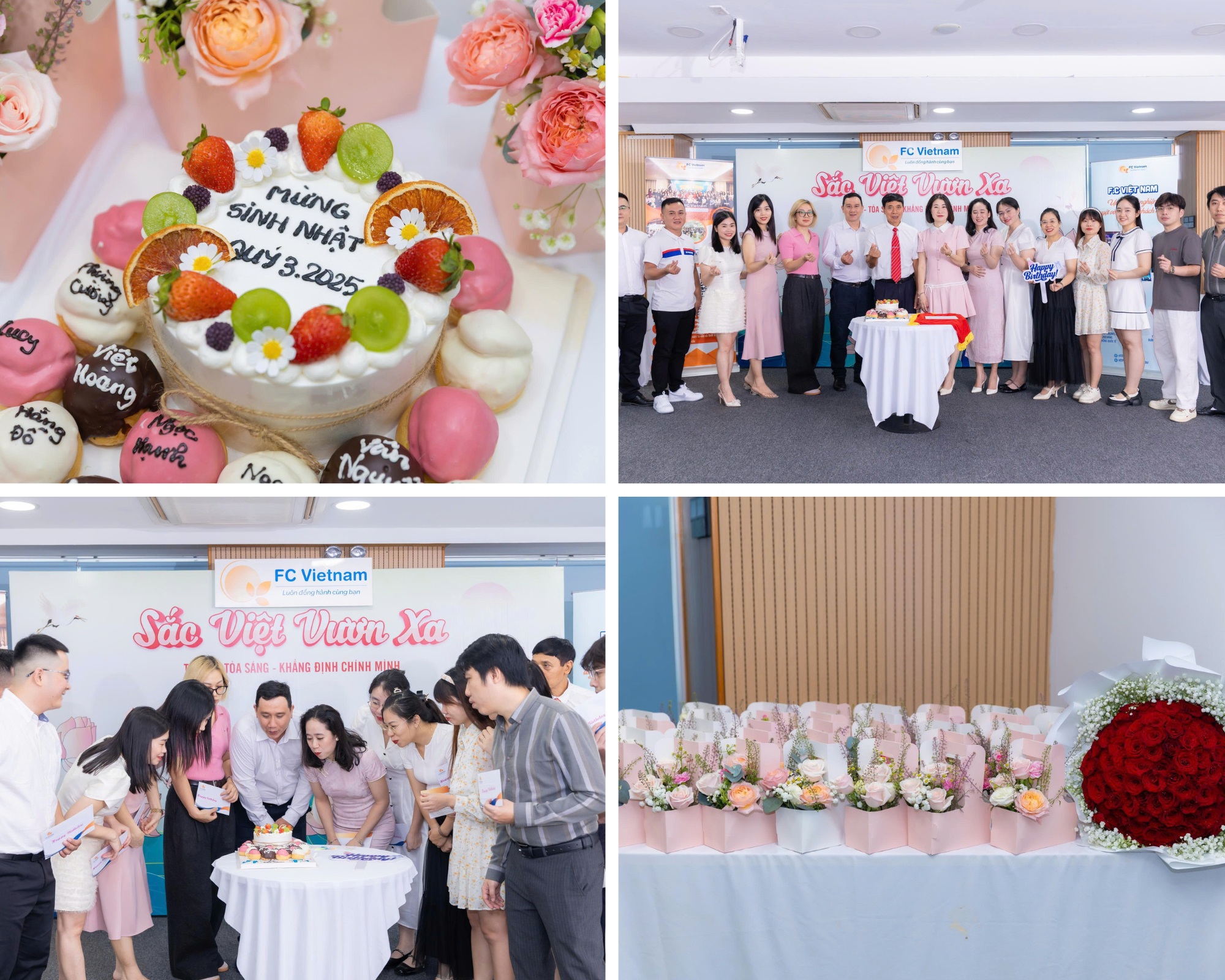 Chương trình đã diễn ra trong không khí ấm áp, vui tươi và đầy tiếng cười. Ban lãnh đạo cùng toàn thể nhân viên nam đã dành những bó hoa tươi thắm, món quà ý nghĩa và lời chúc chân thành đến các chị em – những người không chỉ mang lại sắc màu rực rỡ mà còn góp phần tạo nên thành công của công ty hôm nay. Mỗi nụ cười, mỗi nỗ lực và mỗi cống hiến của các chị em chính là “sắc Việt” rạng rỡ, giúp F.C Việt Nam luôn tỏa sáng và vươn xa hơn nữa trên hành trình phía trước.