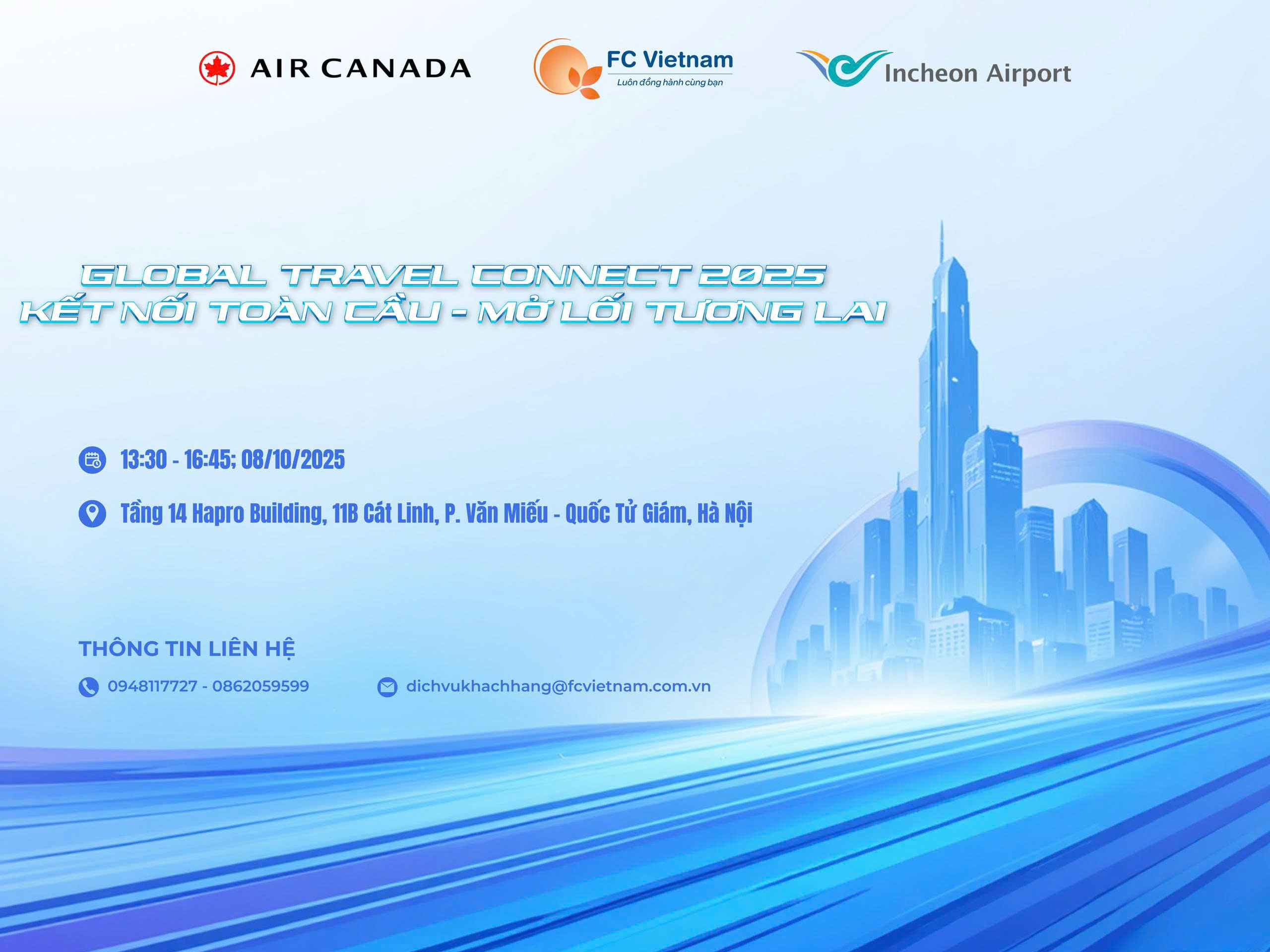 F.C Việt Nam hân hạnh đồng hành cùng các thương hiệu hàng không & du lịch hàng đầu thế giới: Air Canada, Air New Zealand và Incheon Airport trong hội thảo hàng không đặc biệt – Global Travel Connect 2025.