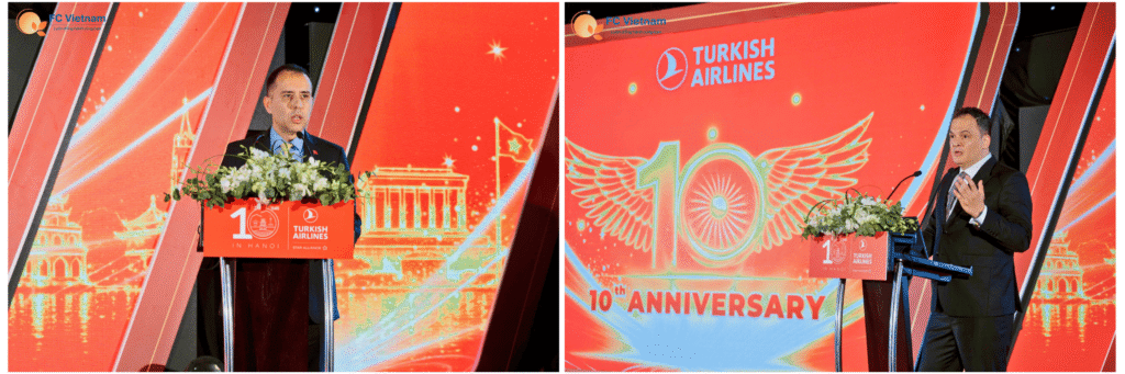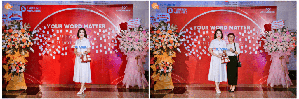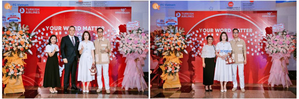 Vào ngày 14/4/2026, đại diện F.C Việt Nam – Tổng Giám đốc Bùi Thị Minh Nguyệt – đã tham dự buổi lễ đặc biệt kỷ niệm 10 năm Turkish Airlines chính thức khai thác đường bay đến Hà Nội. Đây không chỉ là dịp để nhìn lại chặng đường một thập kỷ kết nối Việt Nam với thế giới, mà còn là buổi tiệc tri ân những đối tác đã luôn đồng hành cùng Quý hãng.
