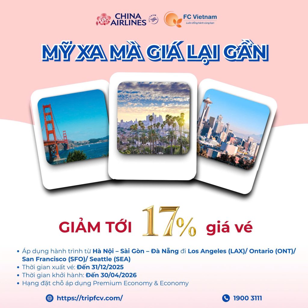 Book vé liền tay để “phi” thẳng từ Việt Nam qua Mỹ, giá hời quá trời mà còn bay xịn cùng China Airlines nữa chứ!