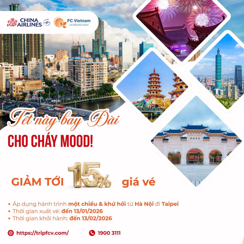 Ưu đãi tới 15% | Tết này bay Đài cho cháy mood!